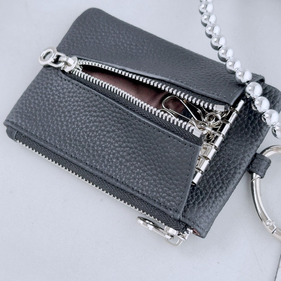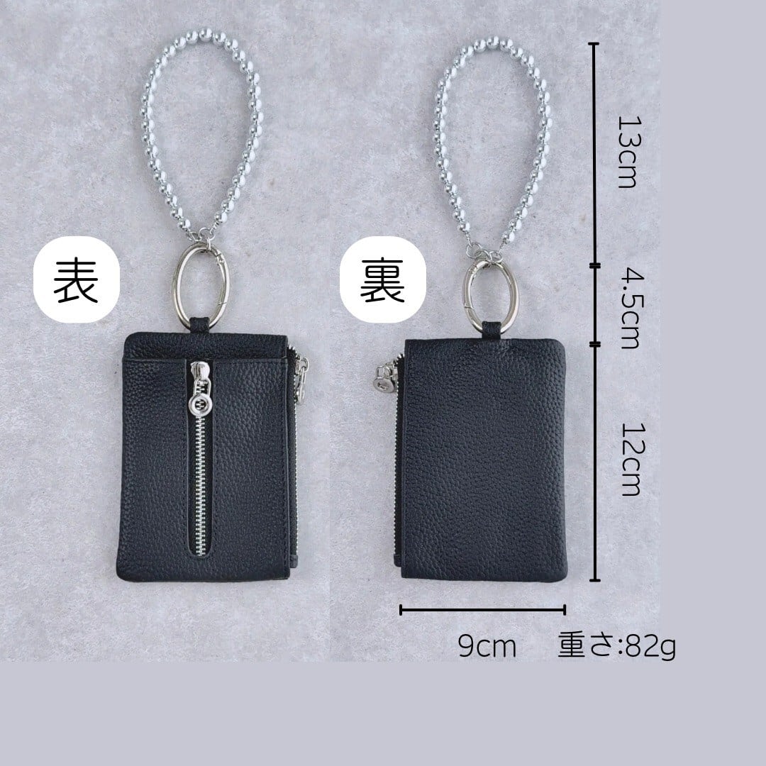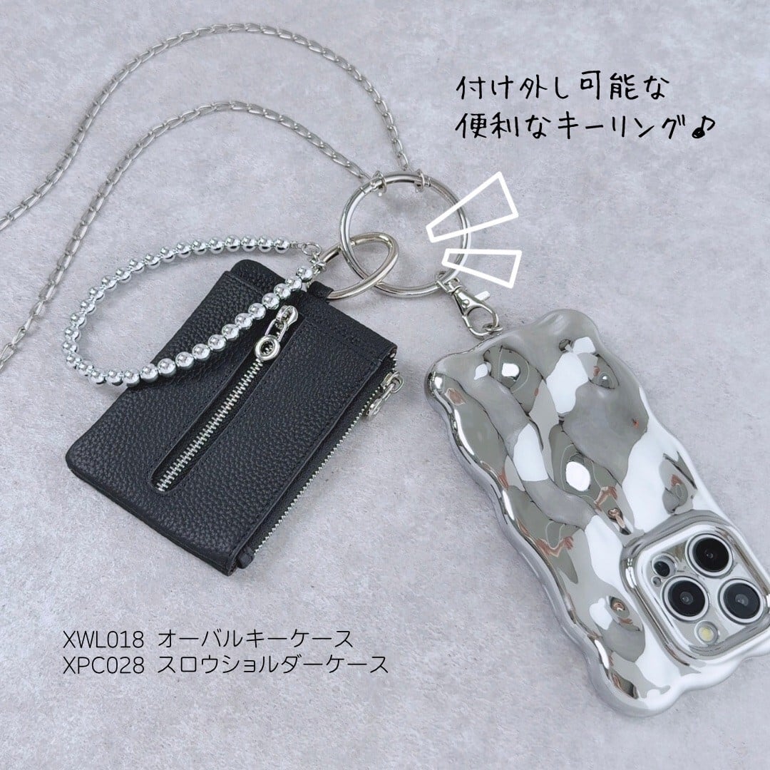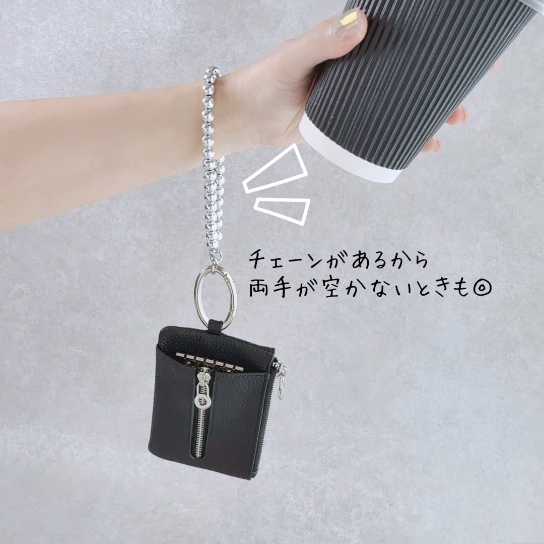 両手が空く便利なチェーンやキーリング付きです
