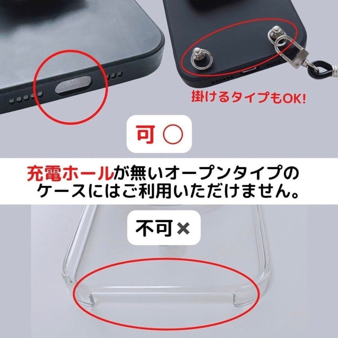 ※充電ホールの無いオープンタイプのケースにはご利用できません。(説明画像参照)