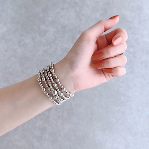 シルバーボールがブレスレットのように華やかに手元を彩るバンドです。